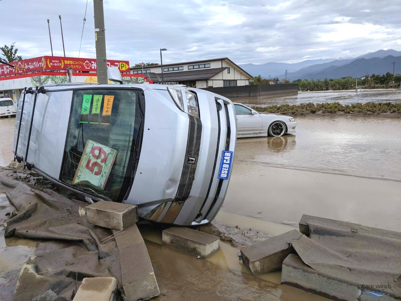 Another hospital, Sanikukai Clinic (In Toyonomachi, Nagano prefecture), is still out of electricity, and many patients are waiting to be transported to safer hospitals. PWJ will continue to help these patients meet their needs. However, the flooding damage is still apparent with muddy roads making it difficult to conduct operations.