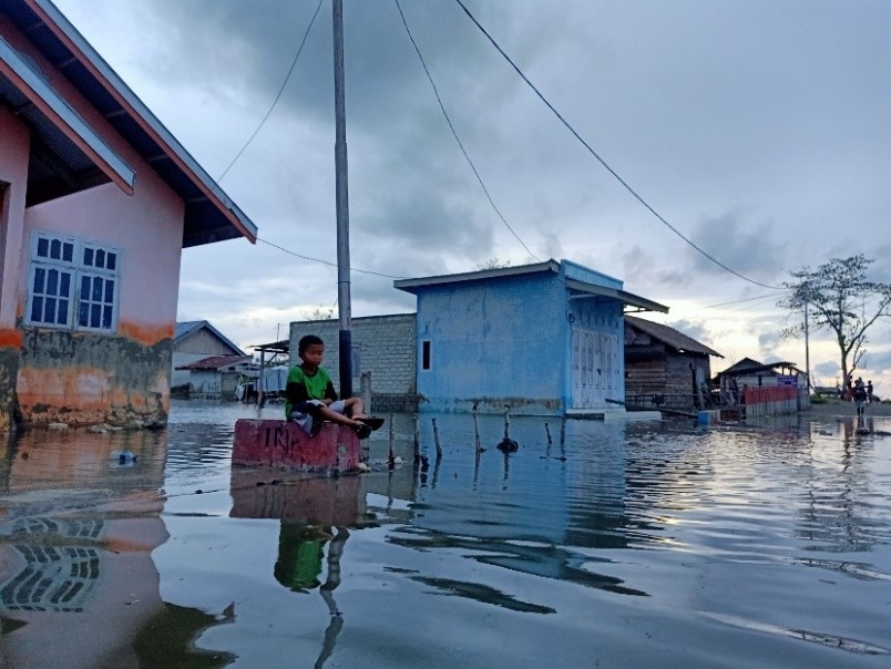 Many houses were destroyed by the tsunami  at the Sirenja district of the Donggala Regency in central Sulawesi, furthermore, due to the ground subsidence caused by the earthquake, there are still areas in which flooding occurs near the coastline at high tide, making road traffic difficult.