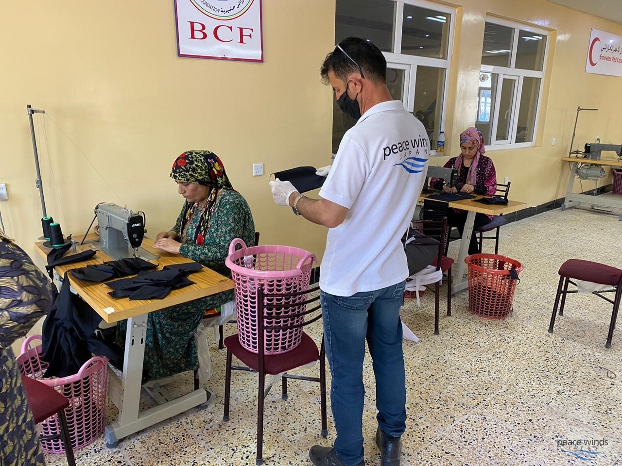 The unexpected spread of COVID-19 presented a unique challenge to project implementation. The government closed access into the camps when confirmed cases appeared, making it near impossible to monitor the situation within the camps. Lockdowns were imposed restricting staff movement. Although Peace Winds had successfully completed many similar shelter projects in the past, unstable circumstances forced the team to rethink our approach. To protect staff and beneficiaries from the virus, Peace Winds established safety protocols including social distancing and frequent hand sanitizing. Peace Winds also procured face mask supplies and contracted refugees to manufacture masks for distribution. Peace Winds program and engineering staff revised the construction phases and the associated cash-for-work (CfW) payment system to reduce the frequency of close interactions with beneficiaries.