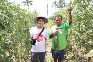 (Left: ACT Staff, Right Mr. Merion with long beans he cultivated)