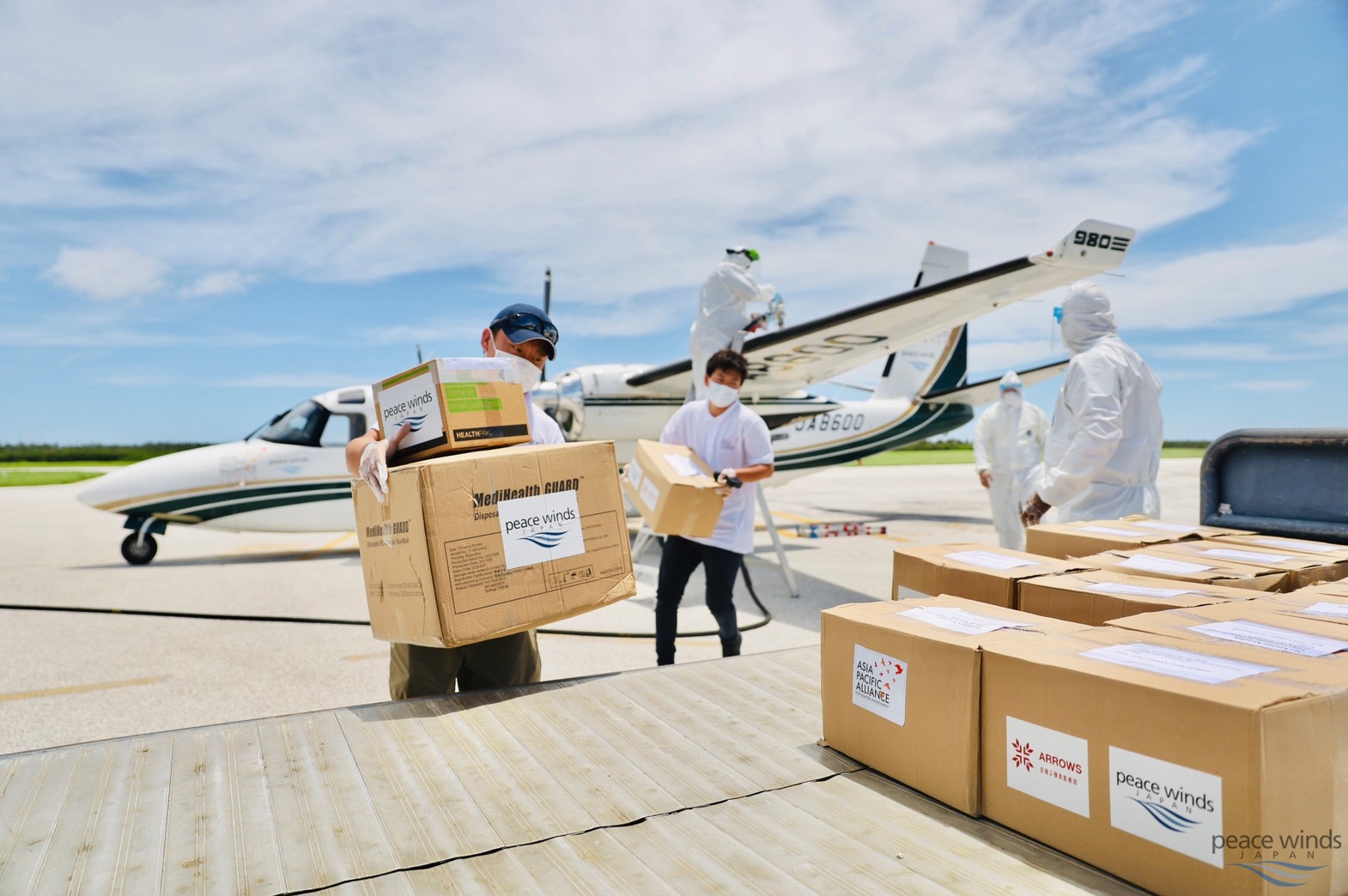 An emergency supply aircraft, owned by Peace Winds Japan (PWJ) and Asia Pacific Alliance for Disaster Management (A-PAD), successfully landed twice in Tonga on 14 and 15 February delivering much needed relief items. Crews offloaded the items at Fua’amotu International Airport to assist those affected by the devastating volcanic eruption and subsequent tsunami waves.
