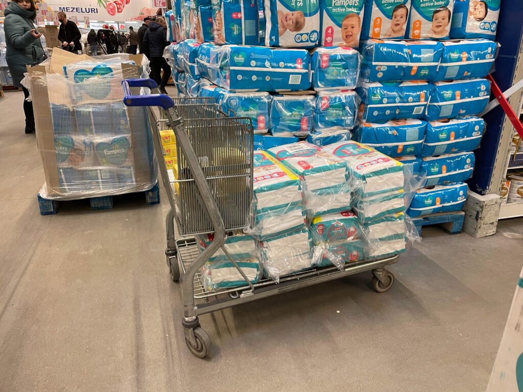 Peace Winds staff are working in Moldova to assist the refugees and today they purchased a large amount of goods from the Metro supermarket and delivered it to the nearby shelter using a tractor and large trailer provided by Chisinau City Hall Council.