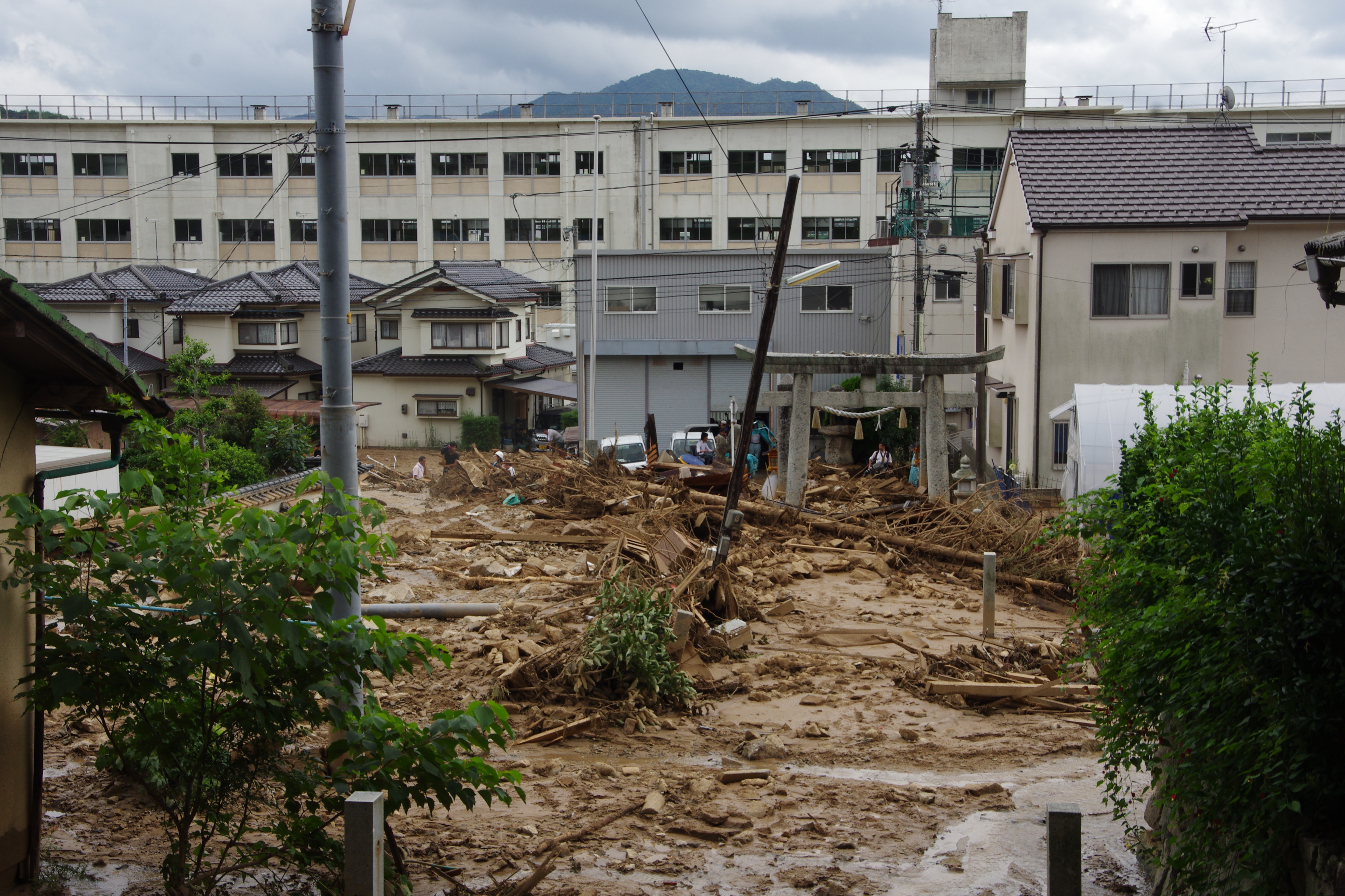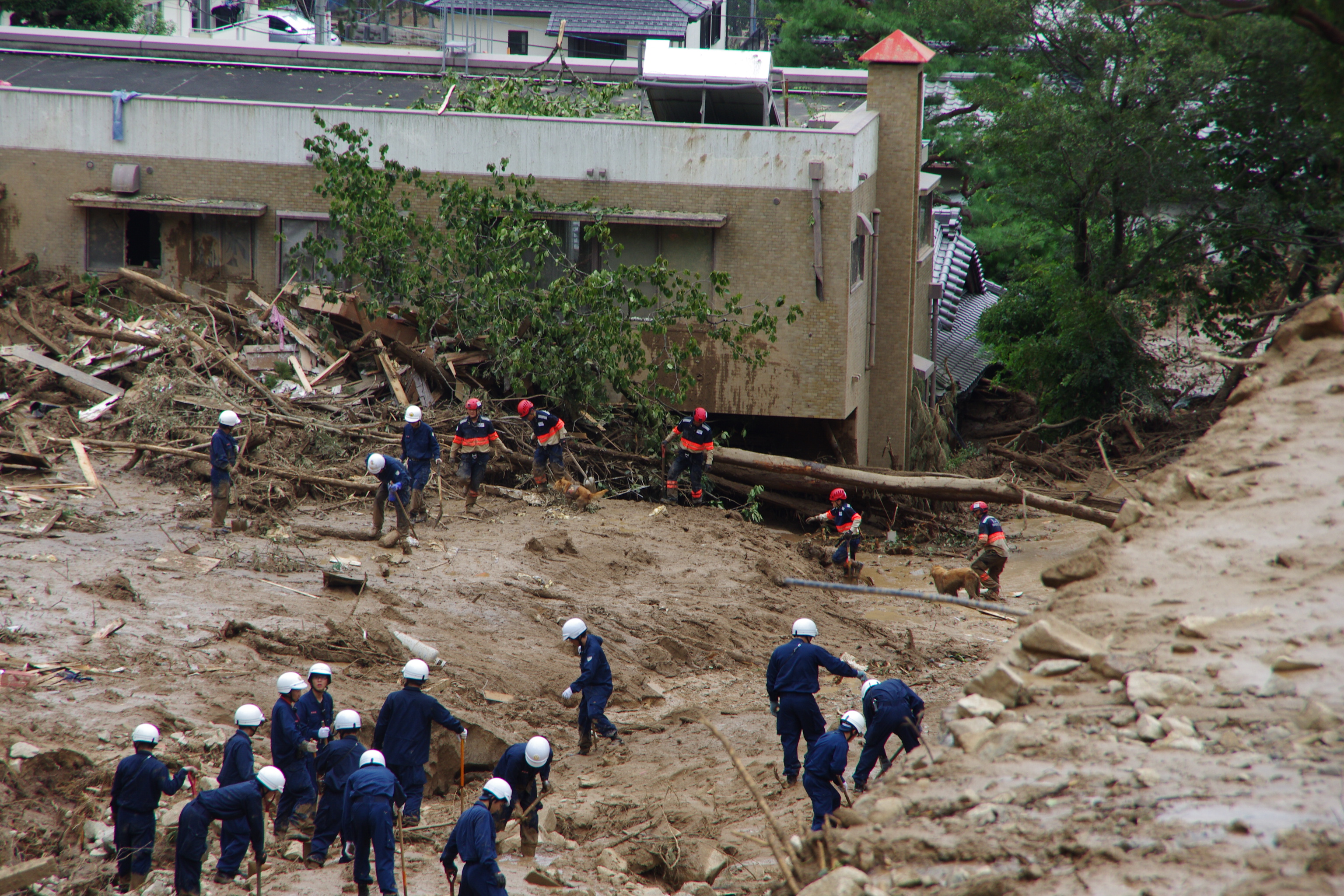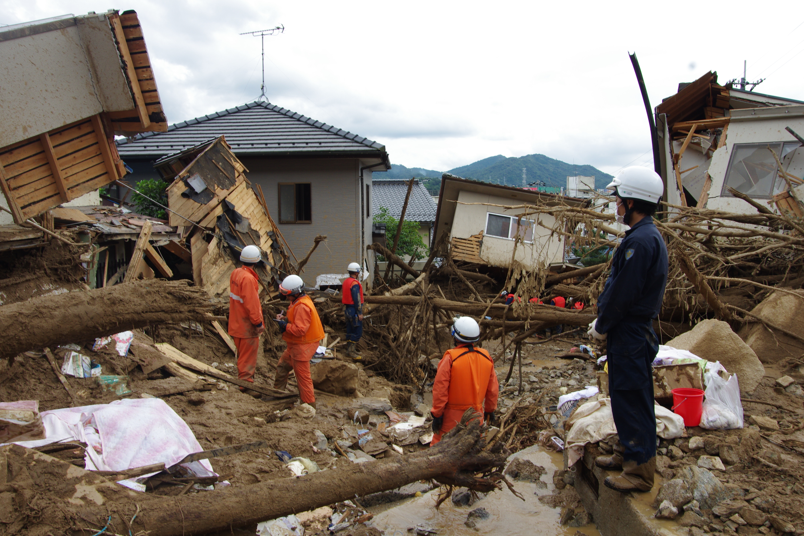 Torrential rain that struck western Japan caused mudslides in several locations in the northern part of Hiroshima City before the dawn on 20 August, destroying houses and engulfing people. With the information of the occurrence of the disaster, PWJ immediately dispatched its SAR team from its base in Jinsekikogen-cho in Hiroshima Prefecture to the disaster site of Asaminami District of Hiroshima City, and it started search and rescue activities in coordination with the police and fire department. The SAR team engaged in the life-saving efforts until late at night, during which it found two victims, who were unfortunately pronounced dead afterwards.