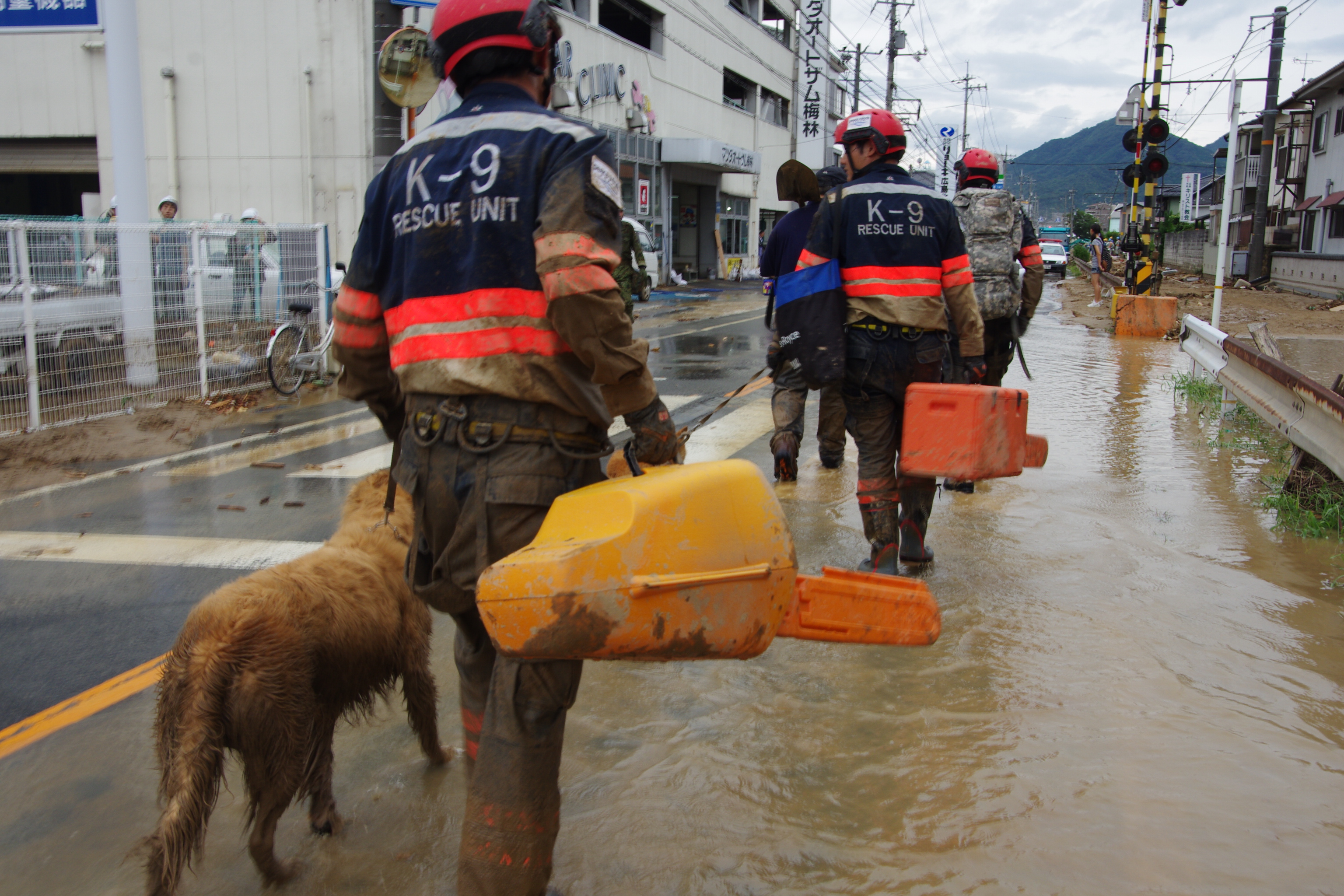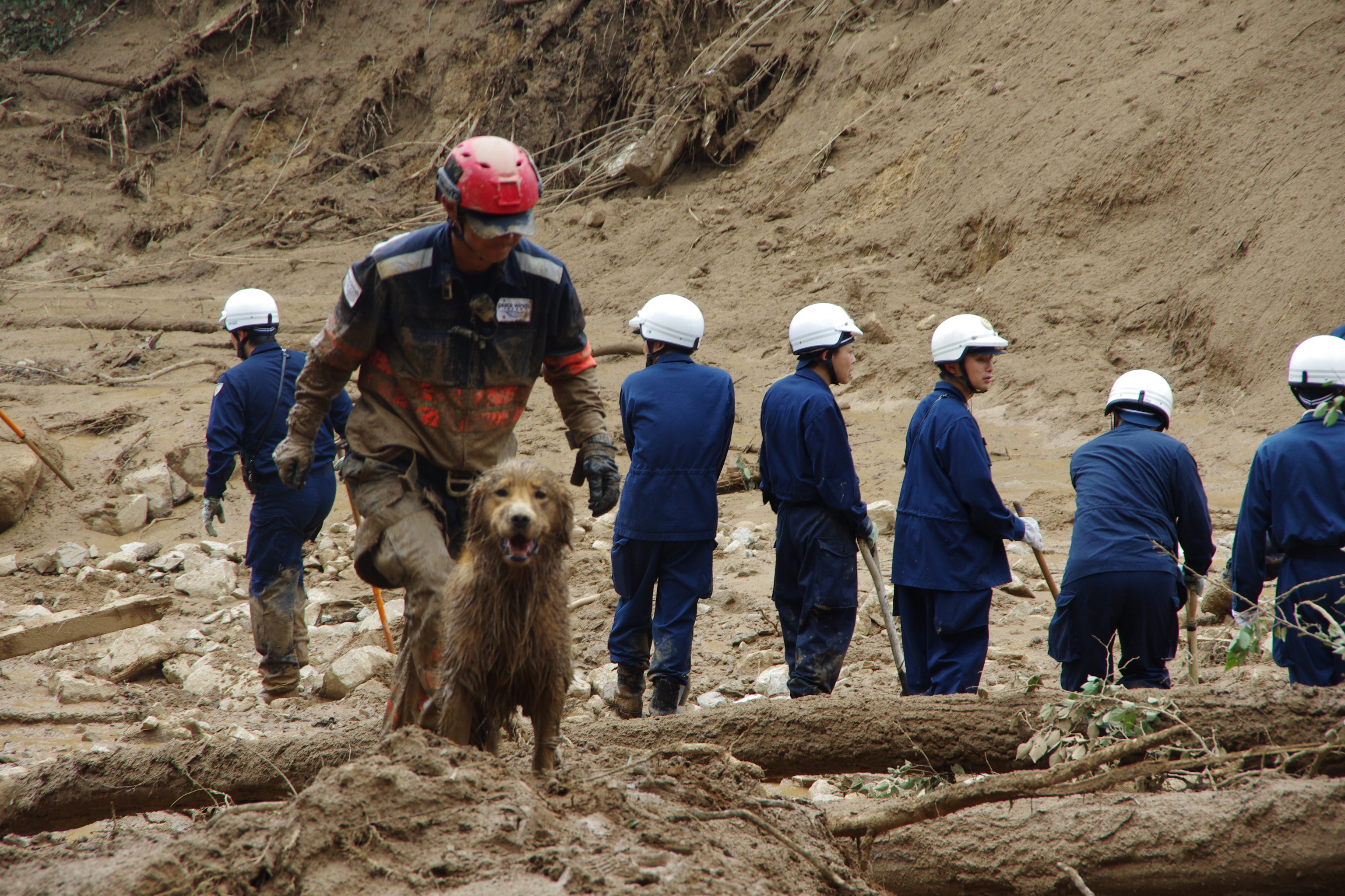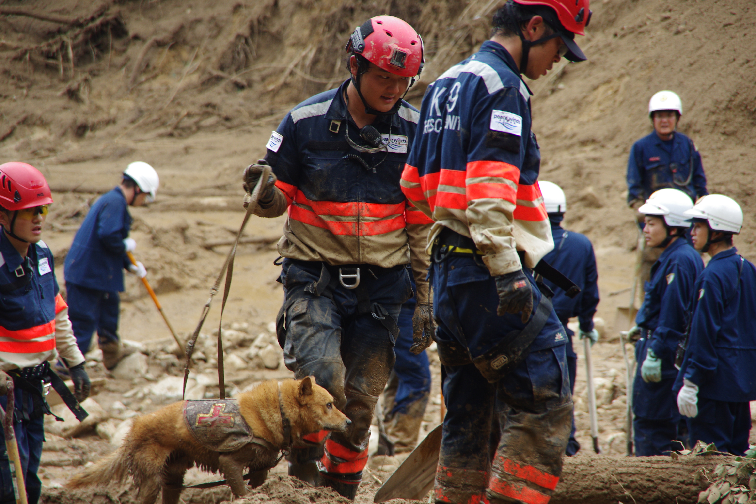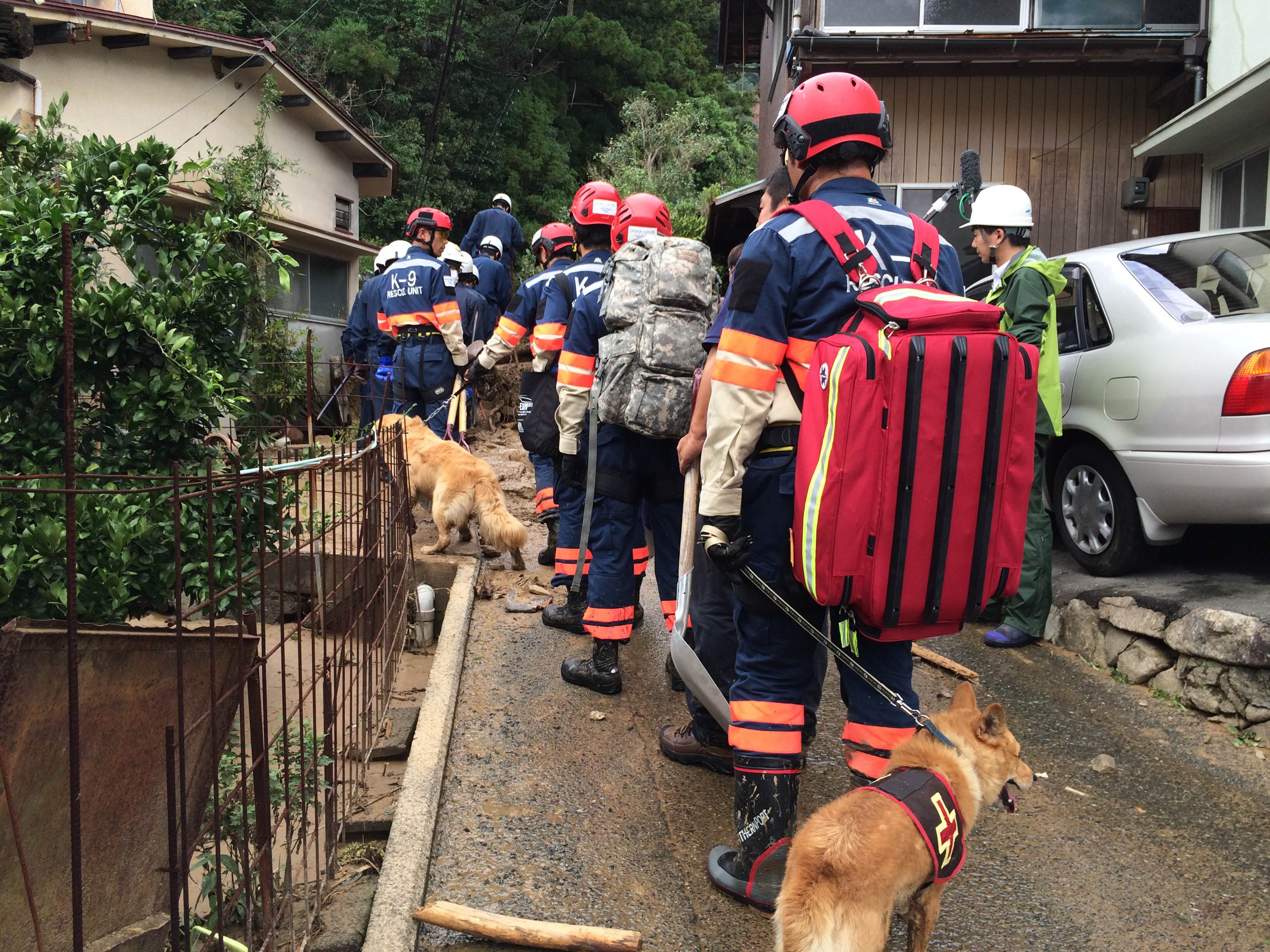 Peace Winds Japan’s search and rescue (SAR) team comprising of seven rescue members and two dogs was deployed to the disaster site of mudslides in Hiroshima on 20 August 2014.