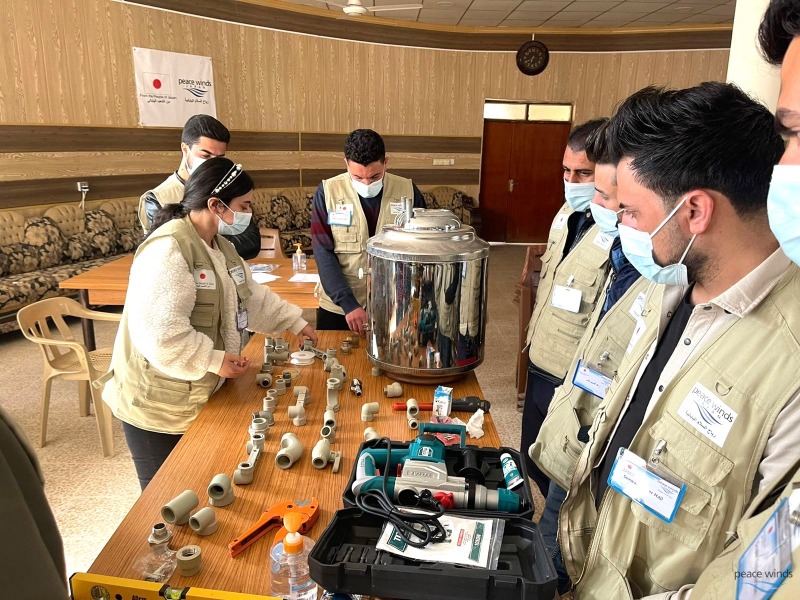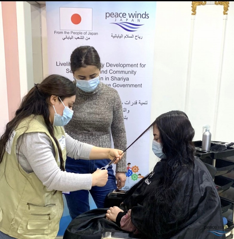 Peace Winds has been conducting a two-year vocational training course since September 2020 for women and youth from internally displaced persons (IDPs) and host communities in and around Shariya IDP camp in Shariya Sub District, Duhok Governorate, Northern Iraq, to improve their livelihoods and develop human resources that can contribute to community cooperation. From October 2021, the second year of the project, the vocational training courses and course topics were finalized based on the first year’s contents and post-assessment results, and four courses were implemented: Beauty Salon, Electricity, Plumbing, and Humanitarian Leadership. A total of 60 participants (24 women and 36 men) took the courses.