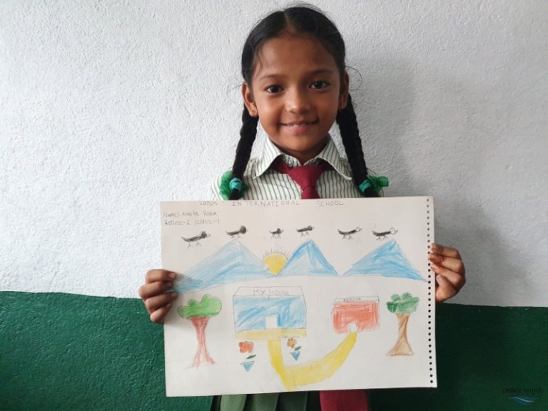 The drawing of an 8-year-old Ankita Roka from Nepal was selected as the best drawing out of all 19 participants, which is incorporated in the month of April in Peace Winds Calendar 2023.