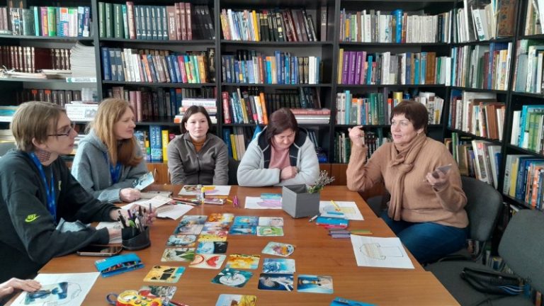 Ukrainian staff of Peace Winds had a chance to be present at one of the psychological group consultations where both IDPs and local residents sit together for a session in a relaxed, friendly atmosphere. Utilizing the methods of art therapy and metaphorical associative cards, participants shared their internal psychological problems and discover new aspects of their own personalities that they hadn’t noticed before. Some shared with us that they felt good after simply exchanging the words “thank you” as part of the practice.