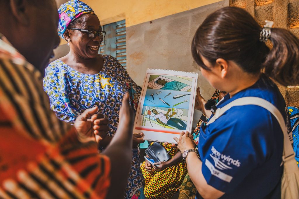 In Burkina Faso, where there are many languages and text-based information is not very effective, we are working on developing awareness materials that use visuals extensively to deliver information in a way that is easy for everyone to understand.
