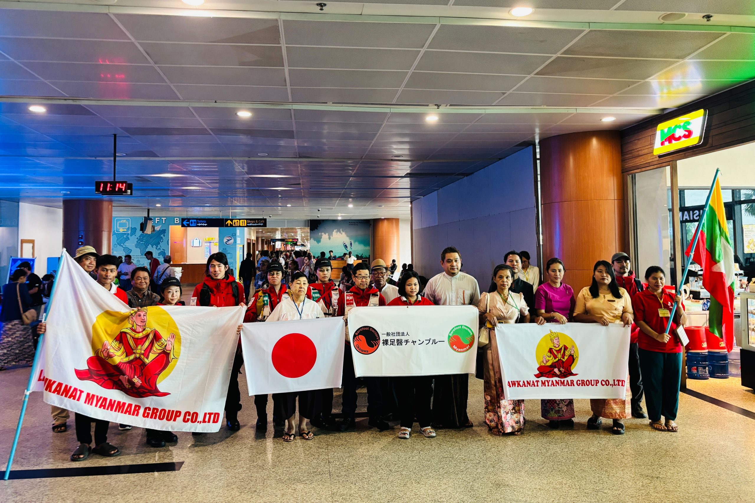 At Yangon’s airport, the team was greeted with applause and words of gratitude, such as “Thank you.”